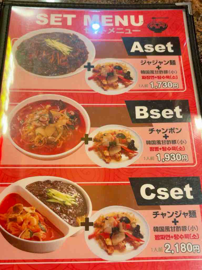 ホール担当はインド系のお姉さん、出てくる中華料理は韓国風となんだか良く分かりませんwジャジャン麺とチャンポンが一つの器に入っているものと、韓国風甘酢酢豚のCセット 2180円を奮発しましょう