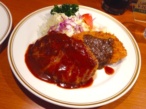 今日のサービスランチは、ハンバーグとチキンカツ。1080円。