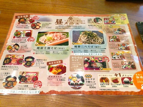 ランチは、福井名物の、焼き鯖、ソースかつ丼、ボルガライス、越前おろし蕎麦など色々あります。