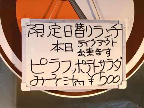 今日の限定ランチは、ピラフとポテトサラダ 500円。