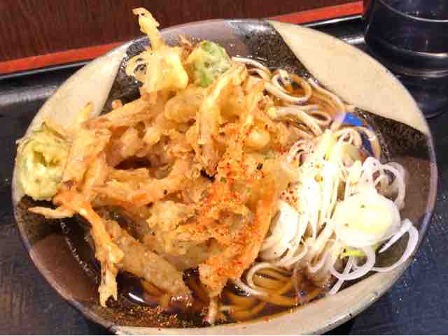 かき揚げも揚げたて熱々ですね。カサもあるので食べ応えがあります。