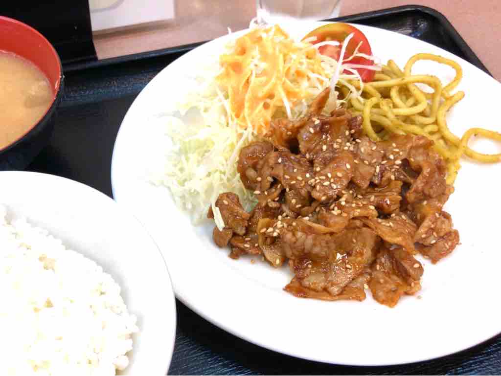 ご飯大盛り無料だそうですが、普通盛りを少なめで。