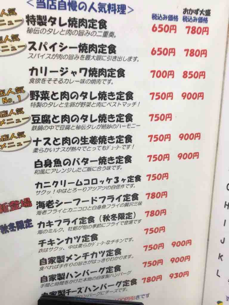 洋食メニューが沢山。組合せもいっぱいあって迷ってしまいます。チキンカツ、でっかいですね。