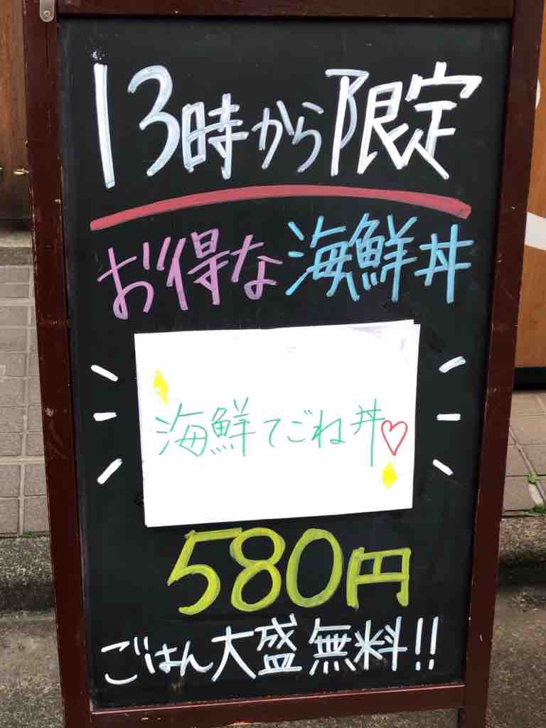 今日の13時からの限定丼は.海鮮手ごね丼 580円ですって。じゃあこちらにしましょう。