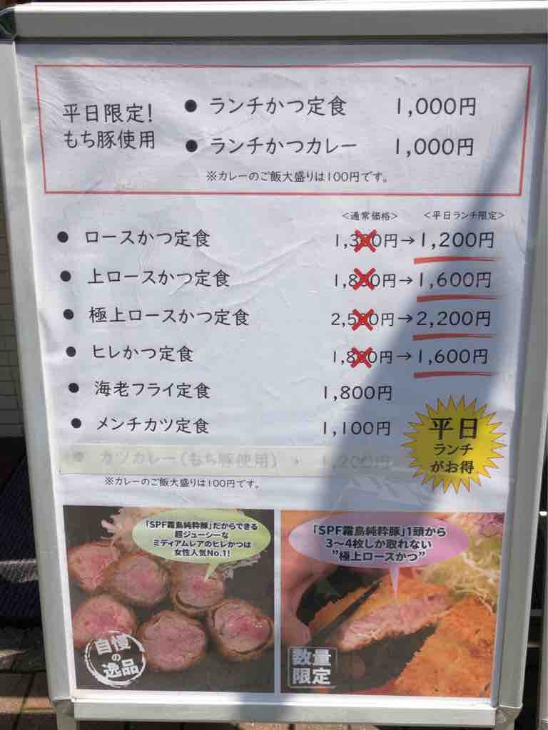 ちょっと贅沢して、上ロースかつ定食 1800円が1600円。をお願いしましょう。