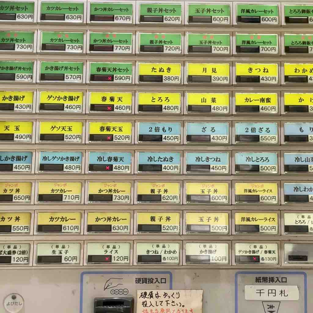江戸川橋、平河町、両国、門前仲町、の4店舗展開。総合スターと言う会社がやっているそうです。飯田橋、春日、本郷三丁目、大崎広小路は、閉店してしまいましたね。他にも天かめの名前を上げるお店もありますが別々のお店。完全スタンディングのTGS。入口右の2台の券売機、春菊天は❌。その昔はかけそば 240円と驚きの価格でしたが、何回かの値上げで今は330円。