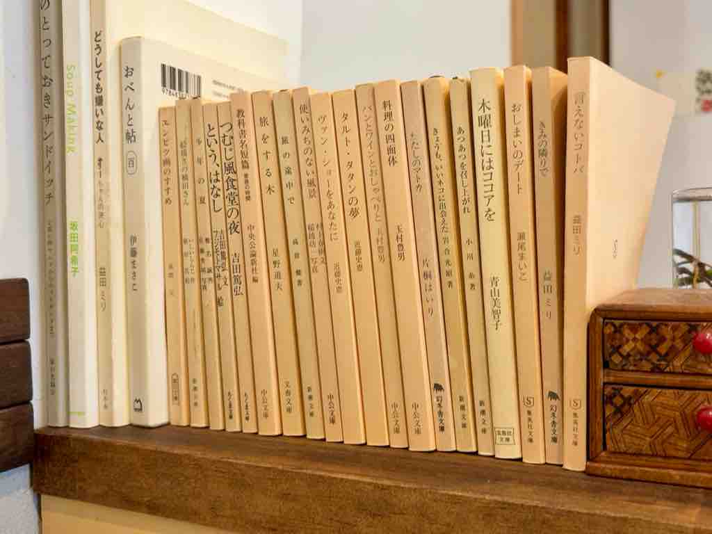 後から来た若いカップルは常連さんの様ですカウンターの上の端に文庫本などが並んでいます