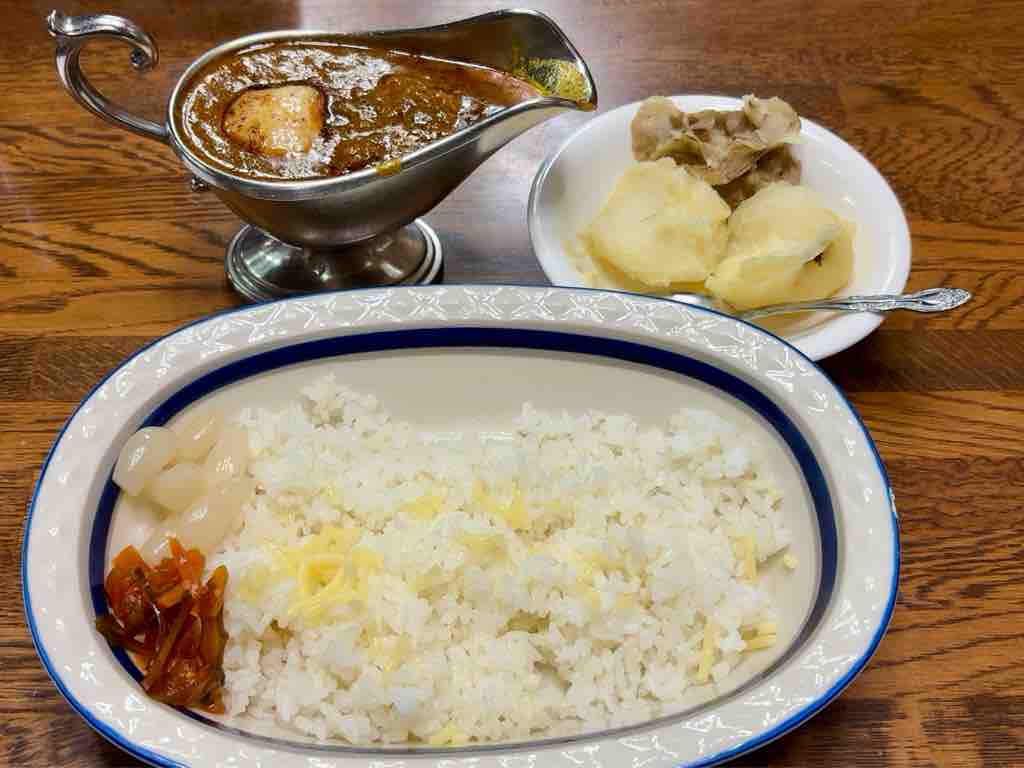 1971(昭和46)年頃に創業、村田家で創業して「ボンディ」の初代オーナーになる村田紘一氏もこちらで修行、欧州留学時にブラウンソースの奥深さを知り、帰国後カレーに取り入れて生まれた、これが元祖の「欧風カレー」