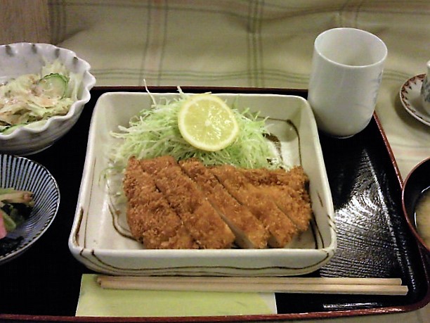 カウンターに座り、チキンカツ定食をお願いします。