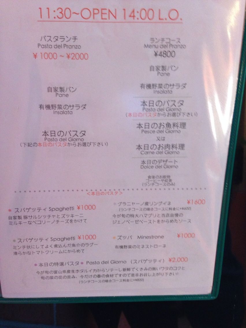 カウンターでメニューを選びます。いつもパスタランチのラグーを選ぶことが多いので、ビアンコメニュー。