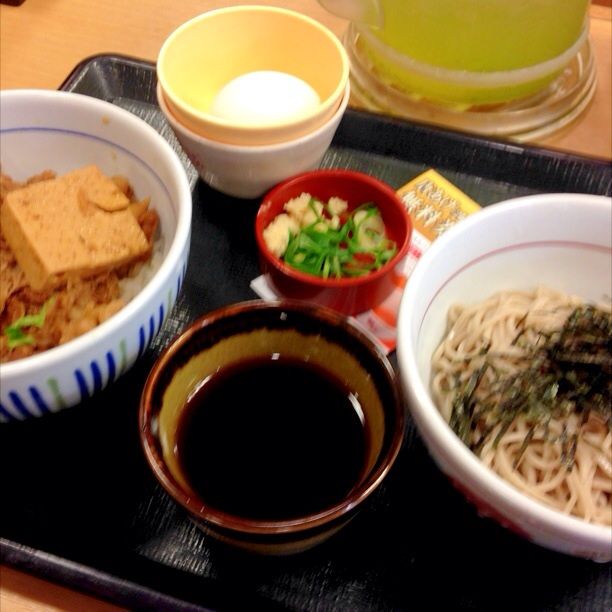 こちらは牛丼をやめて、牛すき丼デスね。ミニと山わさびそばの小のセット。こだわり卵も付けちゃいましょうか。580円+60円。結構高くついちゃいます。