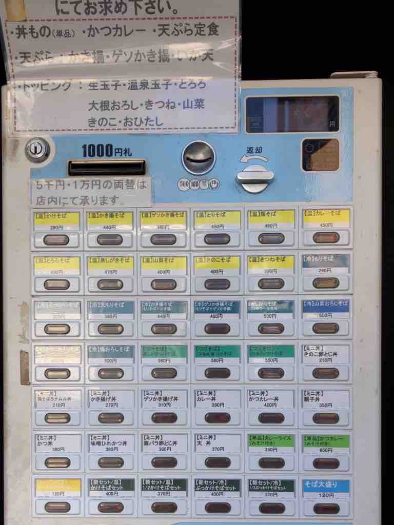 店内の券売機は、天ぷら定食や単品の天丼、カツ丼、親子丼なども買えるので、食べたい物によって外、中使い分けないといけません。