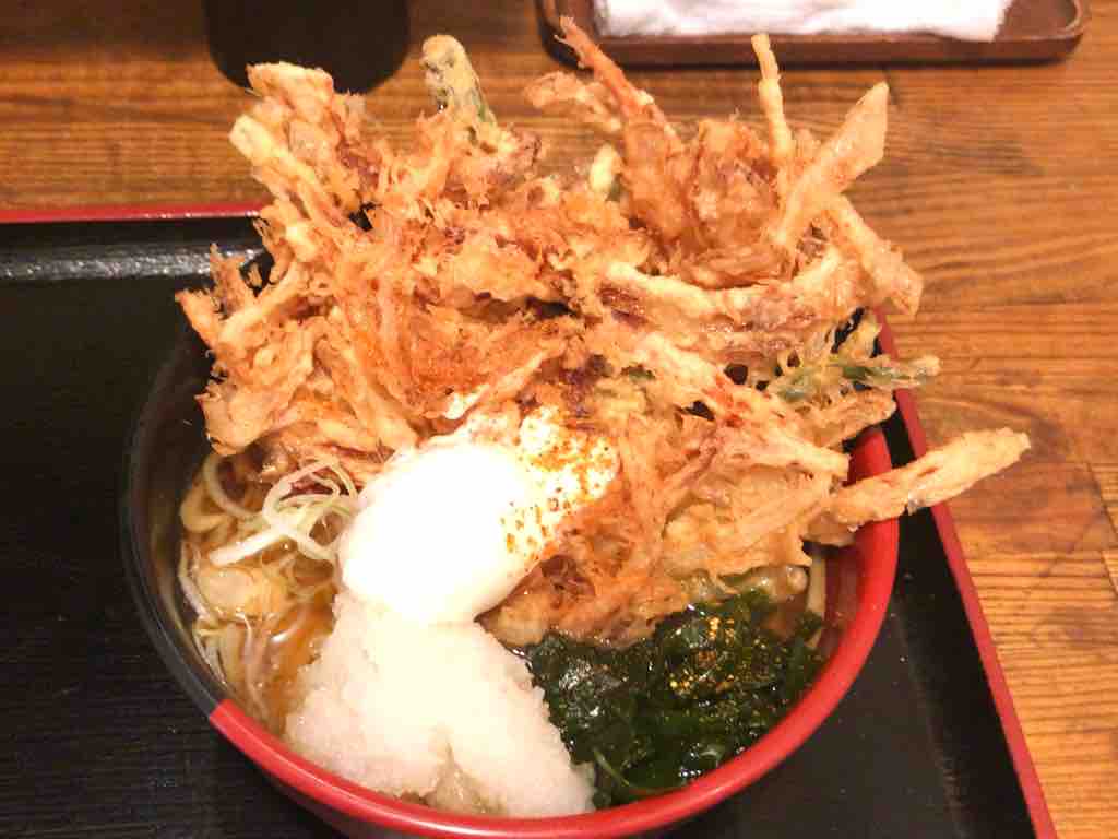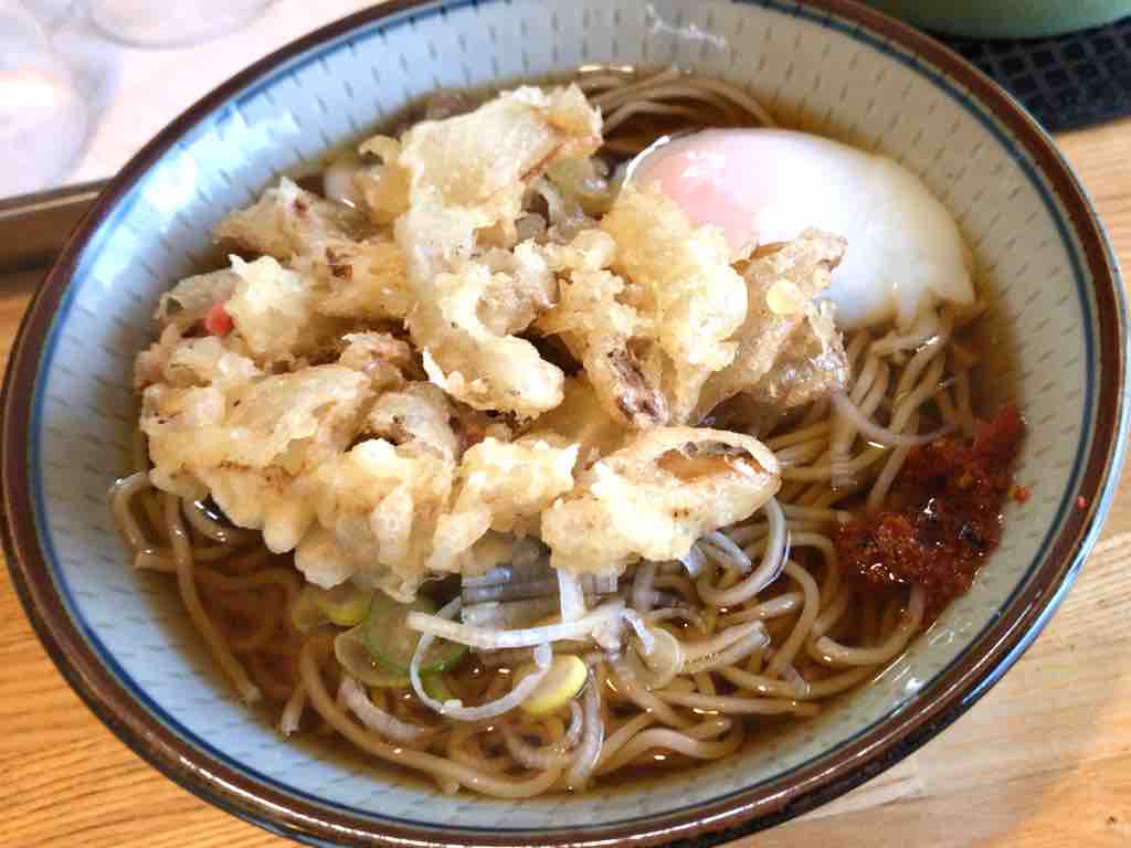 かき揚げ天は、表面はまだカリッとしていて、つゆに浸かったところは丁度良い柔らかさ。