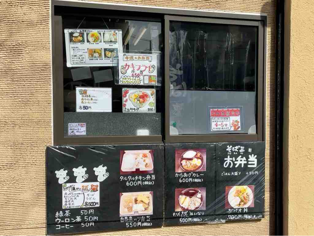 右の厨房脇の注文場所で、蕎麦半分でお願いします。