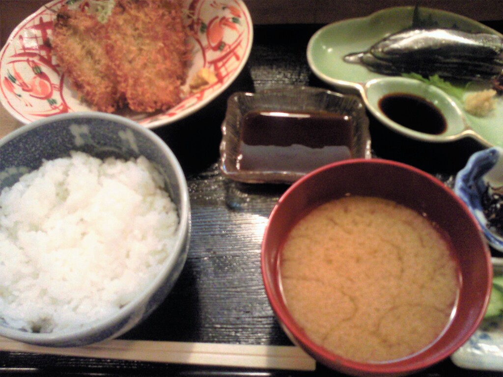 この季節なら、ふぐ雑炊というところですが、外のメニューと階段の踊場には「いわしあります」の貼紙が。ならば、いわし定食 1000円を。ラッキー!これでラストだそうです。