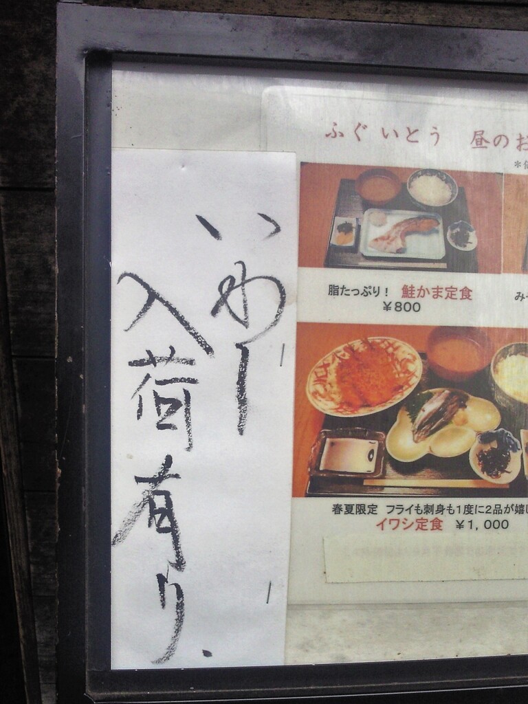 良いイワシが市場にないと出ない貴重なメニューです。数にも限りがあるようで、遅い時間では、売り切れの時も。「いわしあります」の貼紙が目印です。