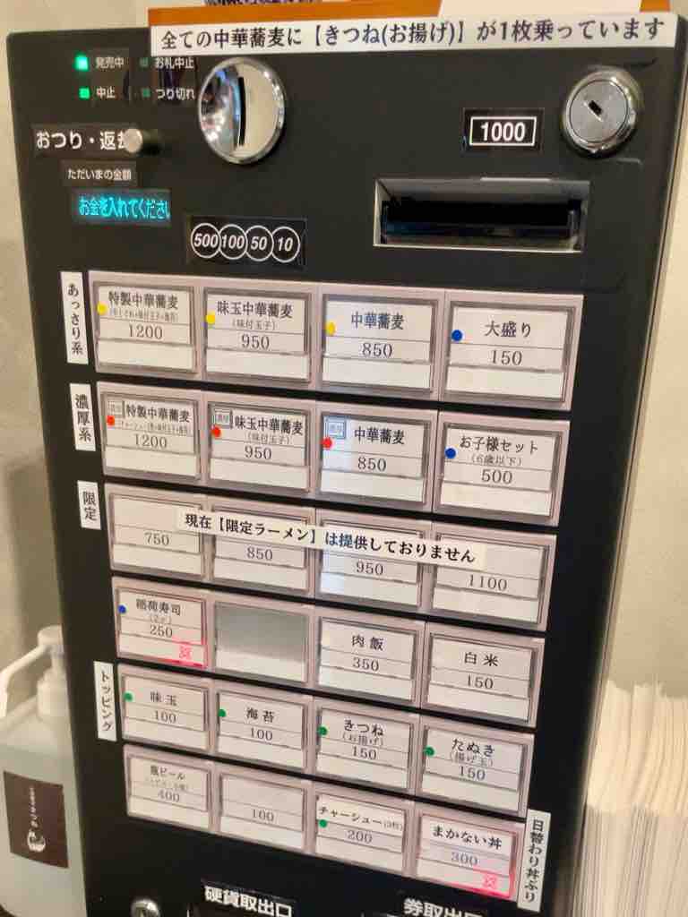 外のバナーもイイ感じに色褪せて来ましたね十条の支店から始まり、やっとこちらの本店でも食べられるようになった「オバケ」入口左の券売機、右上のボタン位置を誇っています