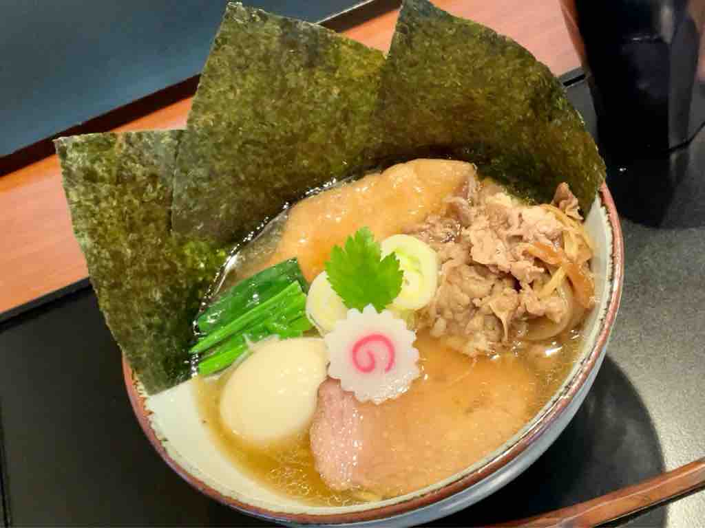 オバケは大きなお揚げが乗りますが、それを温めるのに少し時間がかかります、少しお待ちくださいと言われてカウンターに退避