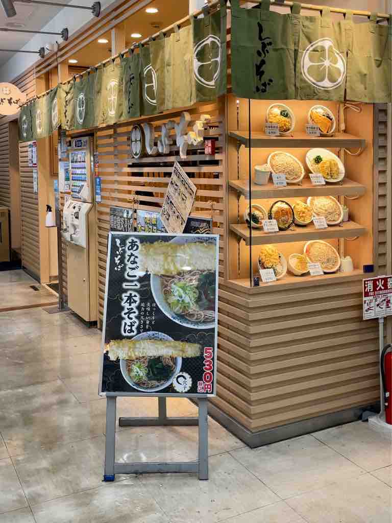表のポスターにバナーと力入ってます。店内左の券売機で、穴子一本天そば620円、麺少なめもポチり。券売機で少なめ出来るのはイイですよね。大盛りボタンはあるけれど珍しい。