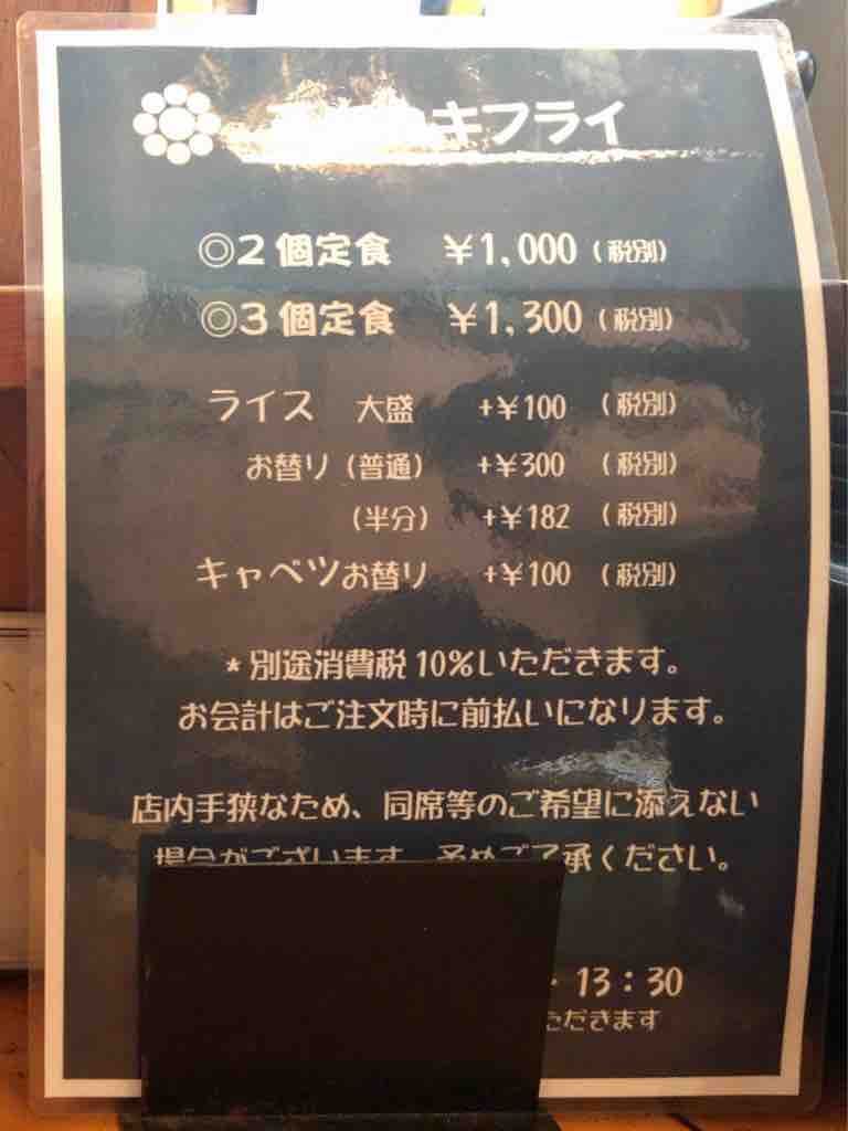 お願いしたのはカキフライセット 1650円。半ライス。ちょっとお高めですが「日本一のカキ」とのことですからw