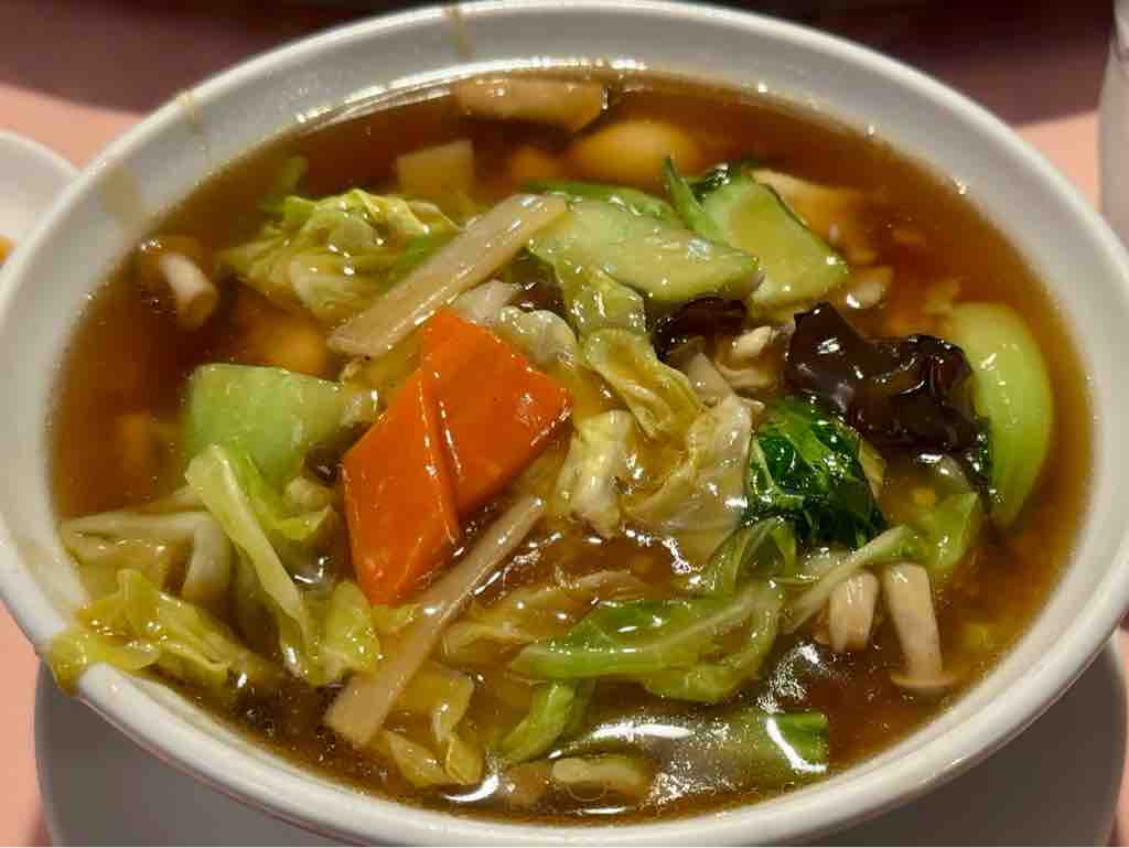 五目は具材は一緒で、かた焼き、柔らかの、焼きそばに、スープと揃い踏みとなりました。