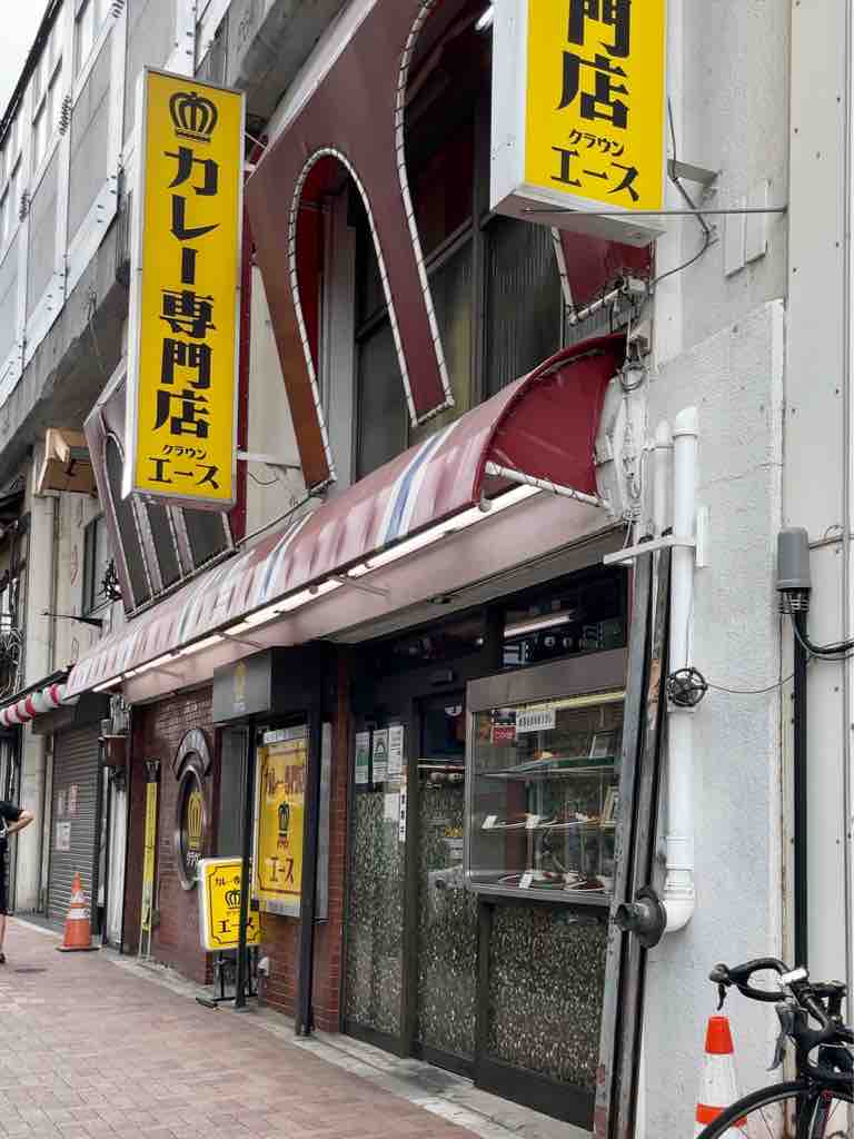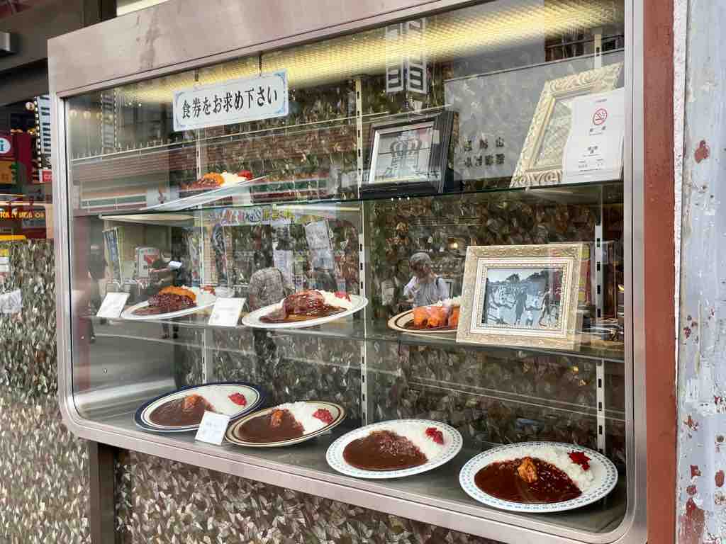 金曜日だからカレーだよねと、こちらに。2021年1月に突如閉店、惜しまれつつ再開を望む声に応えて3月になんと復活。サンプルケースも健在ですね。入口左の券売機は、メニューも少なくなっています。
