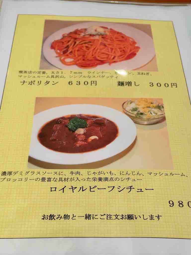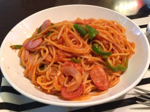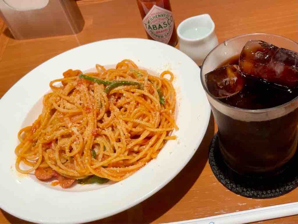 奥さん戻って来て、マスターがまだランチ良いと言ってくれたそうです、では、ナポリタンセット 950円を差額プラスでコーヒーフロートのままで