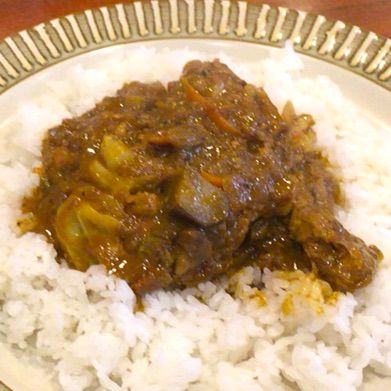 サラッとしたカレーに、チキンがゴロゴロ。茹で卵もスライスされてカレーの中に入っています。