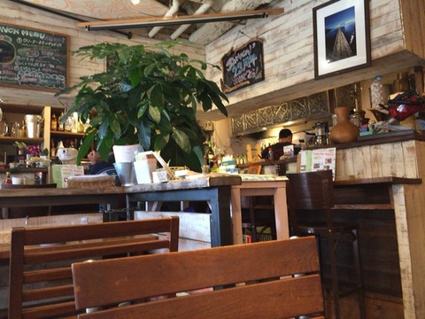4人テーブル席が5つに、2人テーブル席が3席。テーブル席側に2席のカウンター。