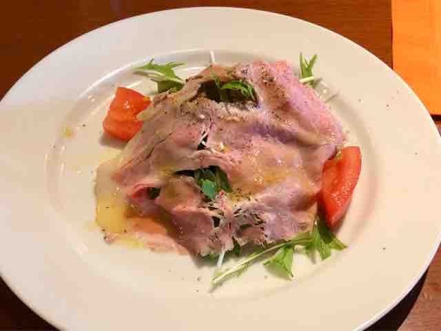 前菜は、自家製ポークハムサラダ。このハムが美味しいんですよね。