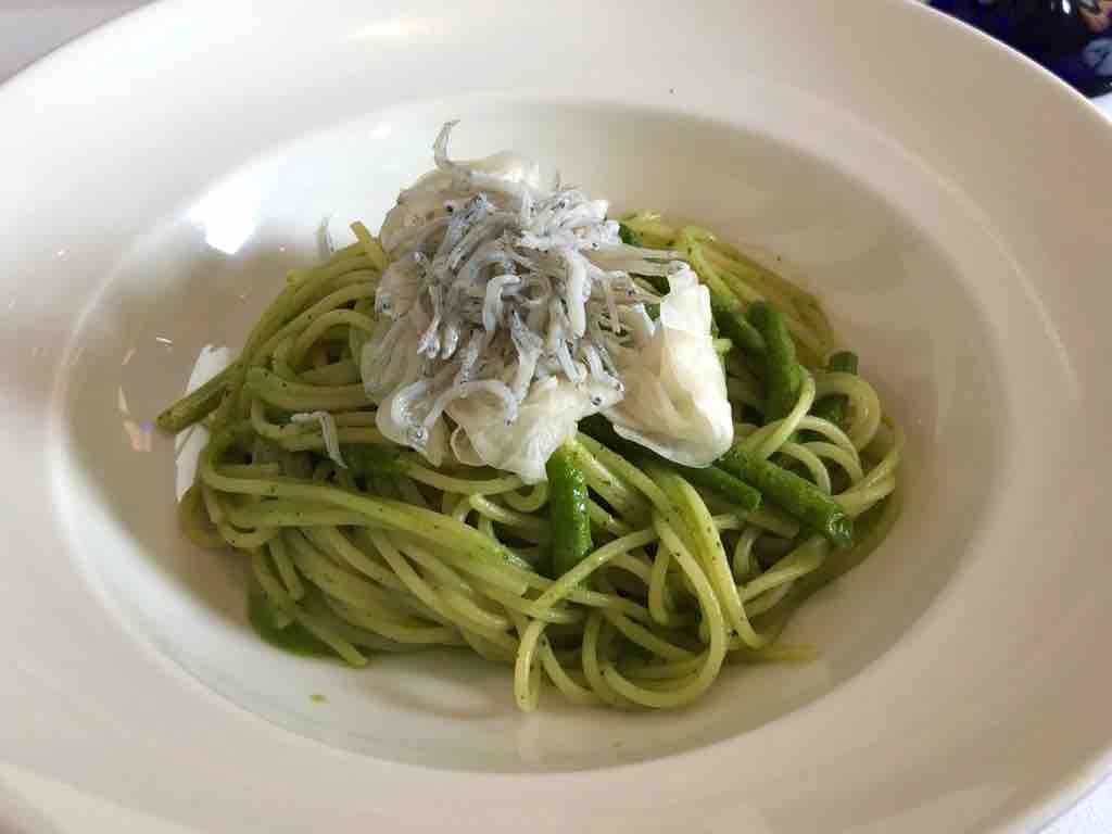 パスタかメインを選べますが、釜揚げシラスのジェノベーゼソースパスタをチョイス。