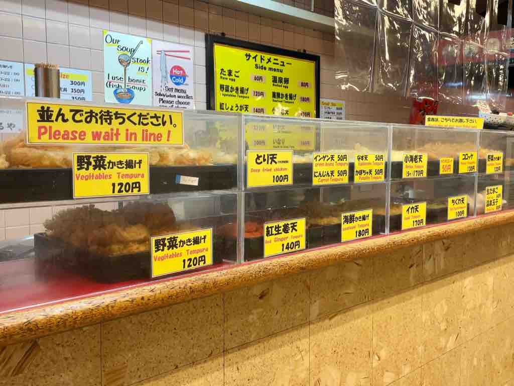 ずらりと並んだ揚げ物ケースは、どれも美味しそうでそそりますが我慢して。