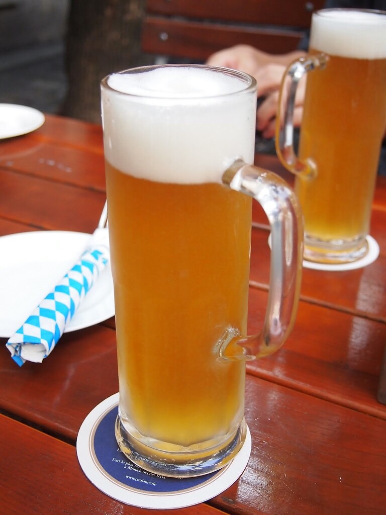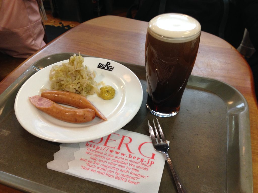 休みの昼前に、ギネスとソーセージ&クラウト。
