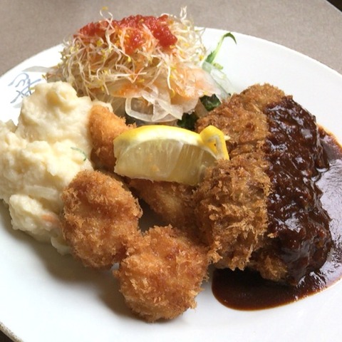 海老フライ、かにクリームコロッケ、メンチカツの3種類