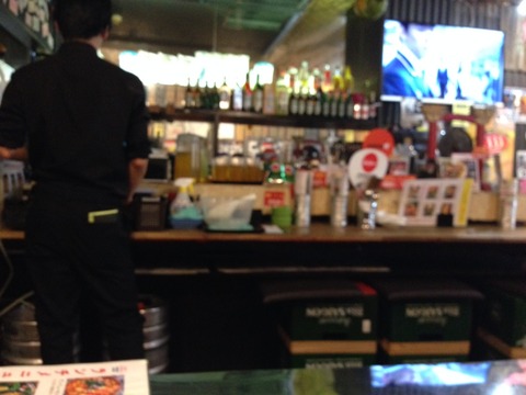 ピカピカのスチールのテーブルは、あれ?前より高くなって普通の高さになってますね。あちらの一角は低いまま。屋台風な感じは、低いほうなんですが、食べにくいし、落ち着かないんですよね。足の短い私でもw足の置き場に困りましたからね。