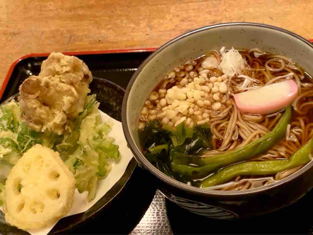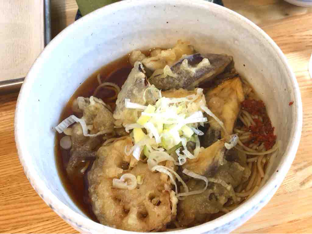 温かい蕎麦は茹で袋麺。因みに冷たい蕎麦だと冷凍麺になるらしい。