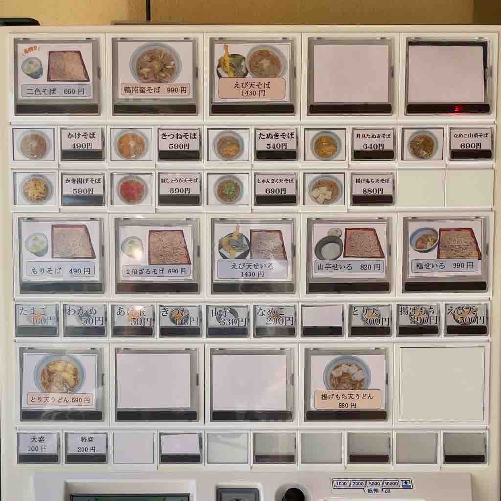 はかき揚げそばや、春菊天そばがあるものの、単品のボタンがありません。一つ消してるボタンがあるのでそれがそうなのかも。