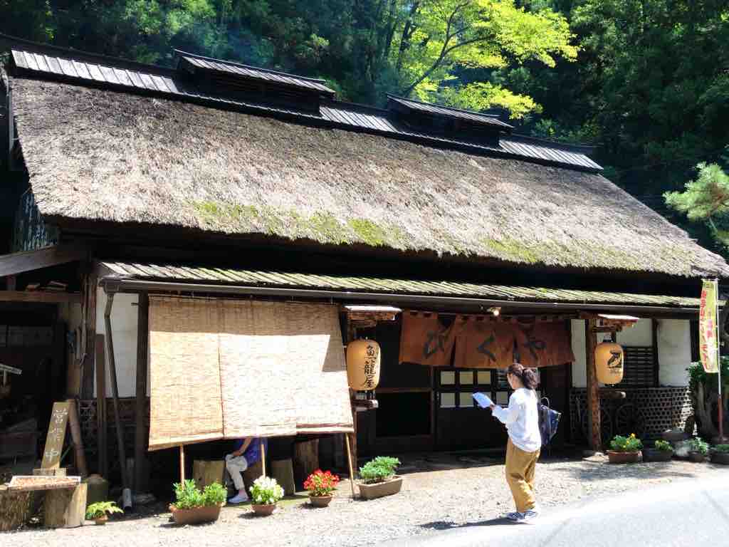 お昼は何処にしようかと、参道へ向かう道の途中、通りがかりの藁葺き屋根の古民家のこちら。