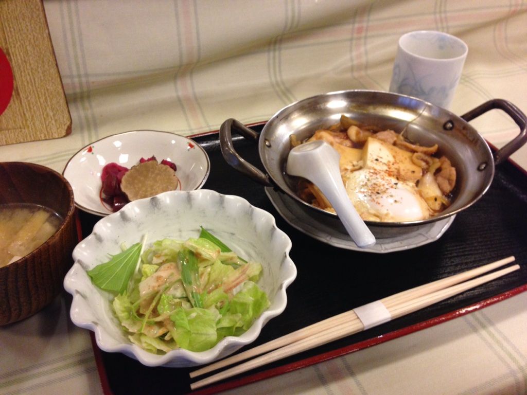 軍鶏すきに卵が入っています。どのタイミングで黄身を崩すのかが問題ですね。甘めのすき鍋のつゆはご飯が進みます。歯応えのしっかりした軍鶏肉は噛み締めると味がイイですね。思いの外柔らかい噛み応え。