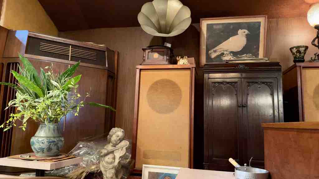 吉祥寺のもう一つのクラシック喫茶がこちら。火、水、木はお休み。「伝説の真空管アンプ制作者」と言われる先代マスターの手作り真空管アンプがゴロゴロ並び、タンノイとヴァイタボックスの巨大なスピーカーが並びます。亡くなった先代の後、一時は休業されていましたが、3ヶ月で復活。真空管アンプは毎日通電しなくてはいけないそうで、奥様がお一人で切り盛りされています。