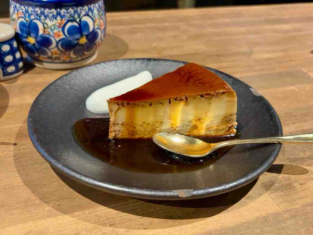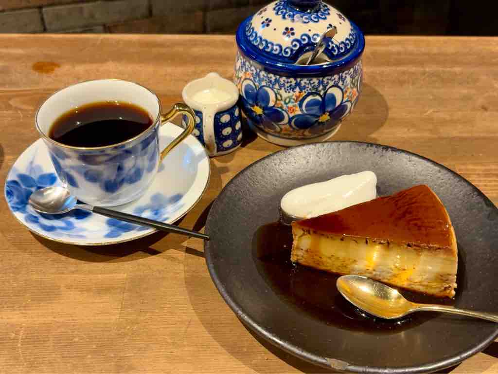 珈琲は、ネルドリップで丁寧に 100cc淹れてくれますイイ感じの苦味があって程よい酸味、美味しいですねプリンはカットタイプ、固めの甘さ控えめ、大きなものからのカットならではのお味、少し粗めの食感