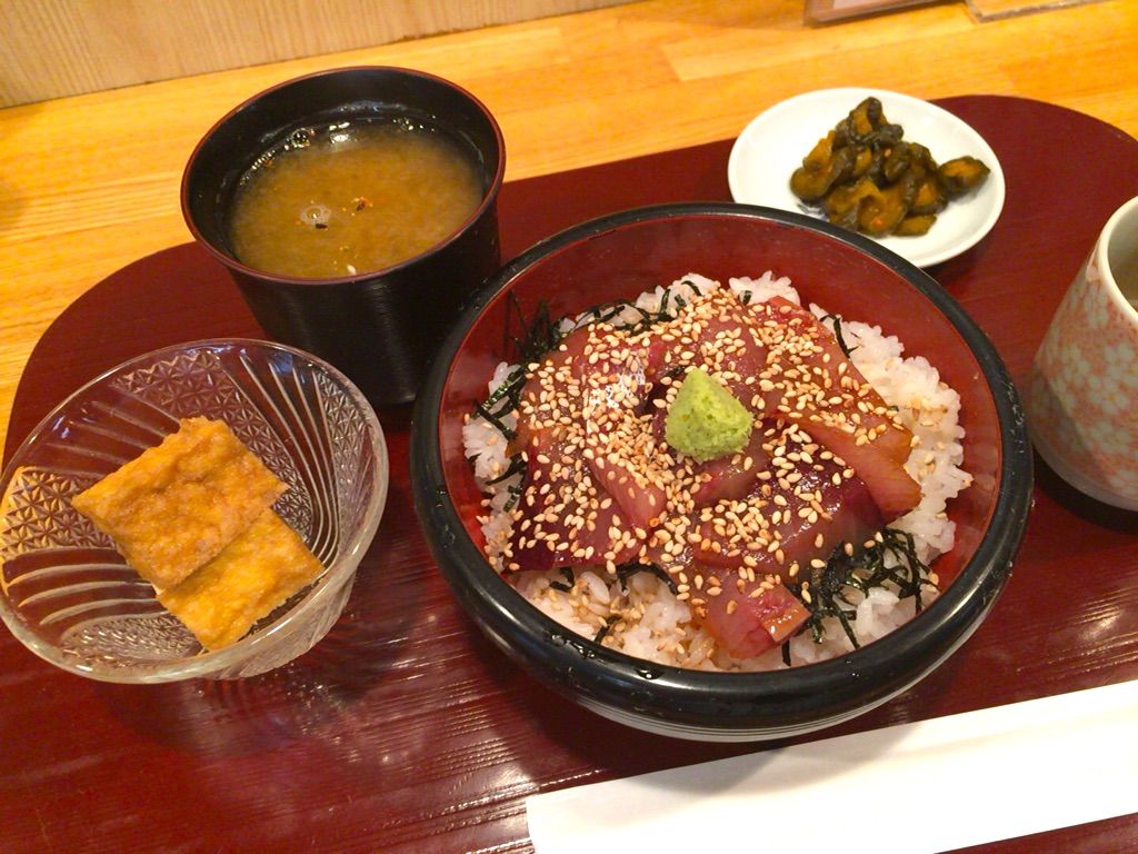ランチメニューは、マグロ(赤身)づけ丼、天然ブリべっこう丼、カキフライ定食の3種どれも780円とリーズナブル。