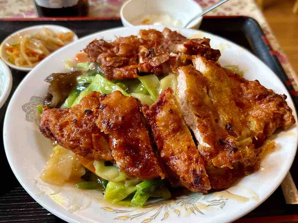 中華丼部分は野菜が沢山であんかけになっていますから、ボリューム感半端ない