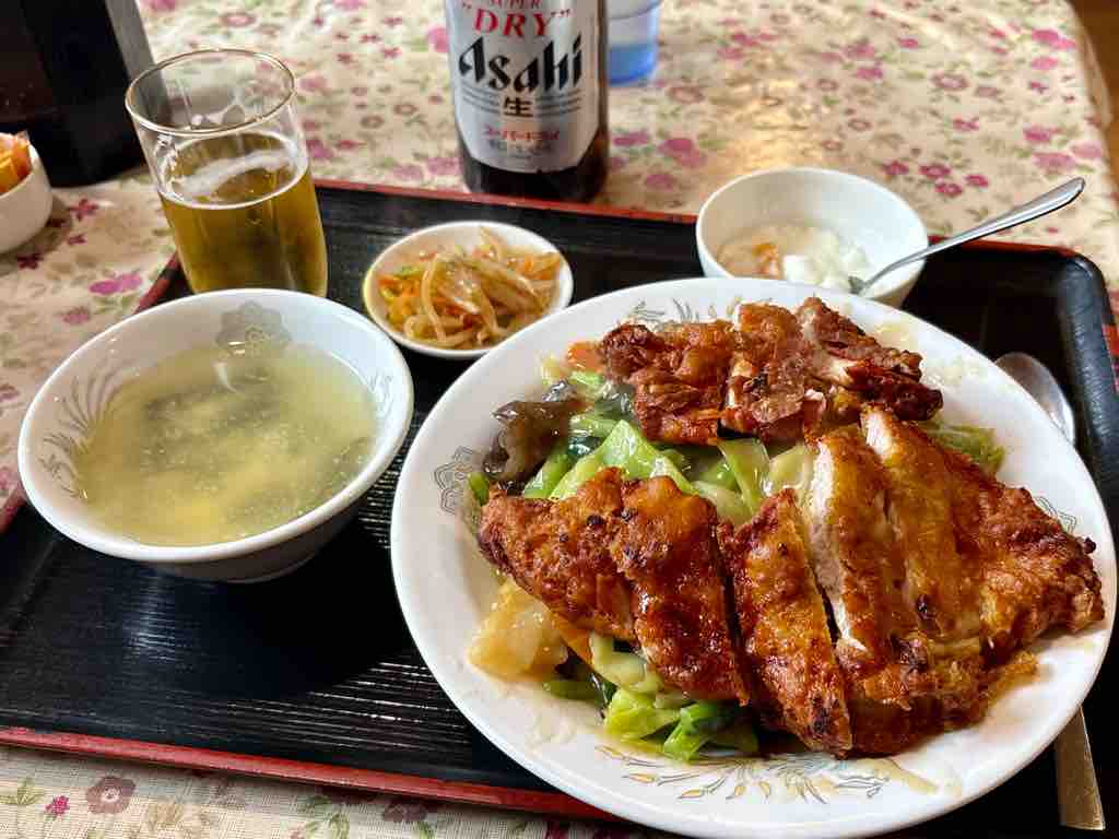 排骨は、カレー味で、厚みもあるので食べ応えがありますね、カリッと上がりとても美味しい、ビール頼んで大正解