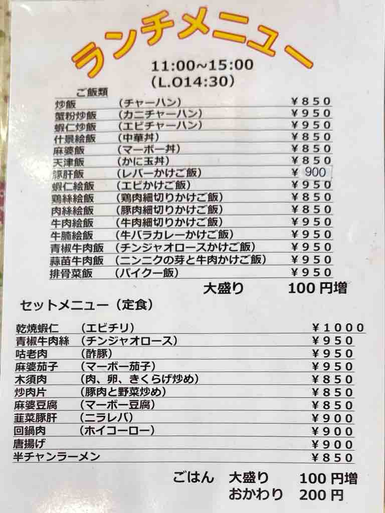確かに店内は油ぎってる感じ、入口左の壁には、認定の人形が飾られていますランチメニューは定食中心で、色々な種類があります金曜カレーという事で、排骨菜飯(パイクー飯)950円をご飯半分でお願いします、後、瓶ビール600円も