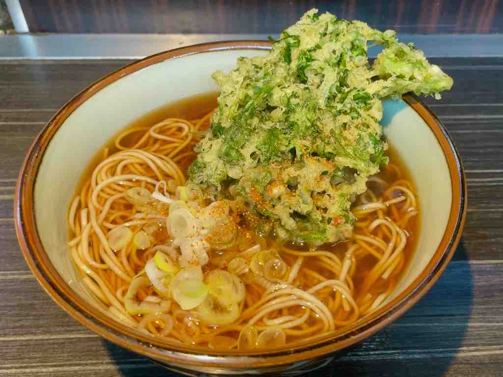 熱々のつゆを吸って春菊天も熱々。刻み大きめのまとめ揚げ。やや衣多めですが、つゆに溶けるのでこれが良い。