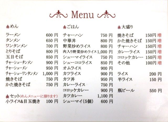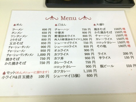 お母さんから空のコップを受け取り、お願いするのは、カツカレーご飯半分 1150円、カウンターに置かれた麦茶の2Lボトルからセルフで注いで待ちます壁に貼られた手書きメニューが豊富です、食べたい物が沢山、ダルーメンが名物です