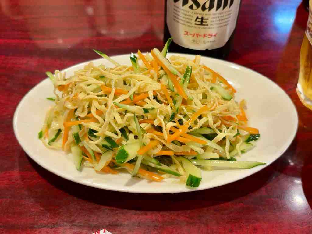 拌三絲は、きゅうり、人参、糸寒天の酢ベースの和え物で、さっぱりしていて美味しいですね