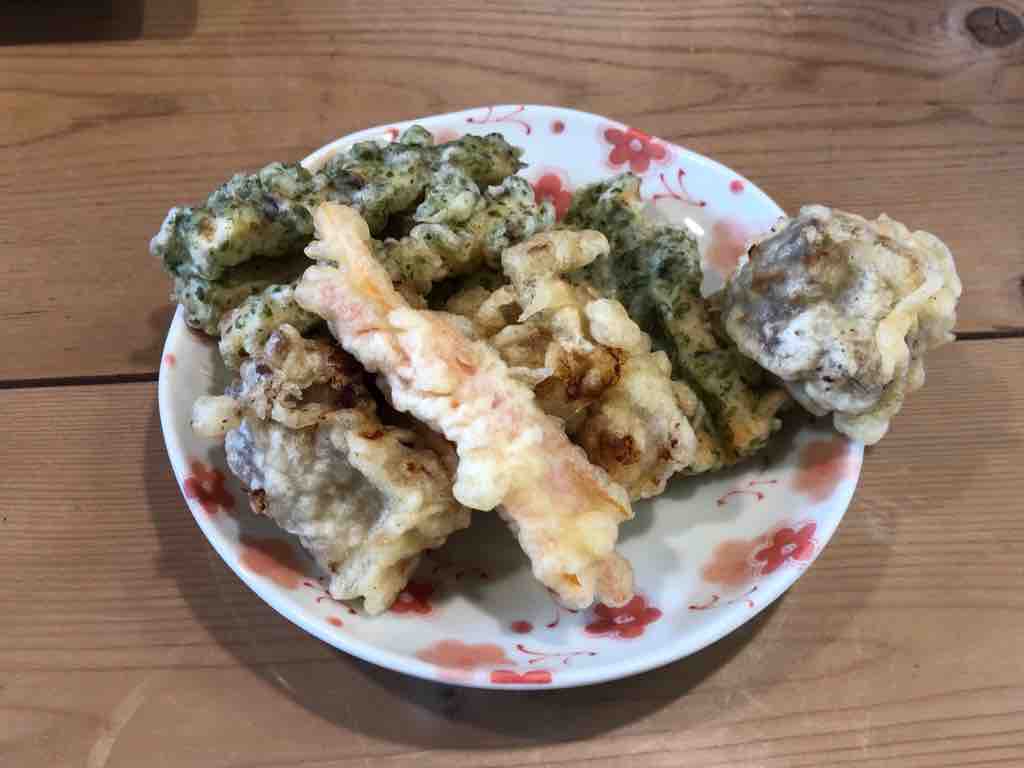 かき揚げ天は注文受けてから揚げてくれるのですが、小さいですね。コレで200円はコスパ悪いかな。ちょっと揚げ過ぎな感じでした。食べ終わって、お会計の時お土産で「すりだね」150円も一緒に。奥さんからコレからの季節、味噌汁に入れると温まりますよとアドバイス。