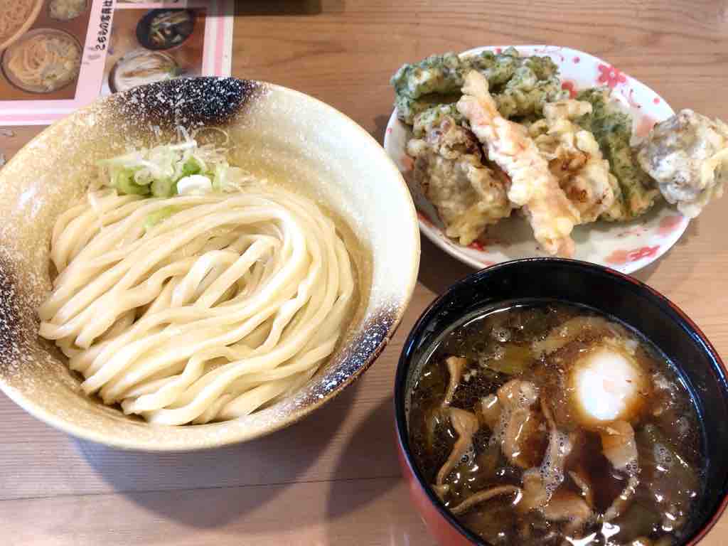 武蔵野うどんのつゆは醤油でやや辛味の強い甘辛汁。ふわっと柚子が香るのが美味しいですね。豚肉は控えめなので肉増しにしても良いかもしれません。